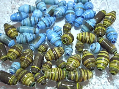 Over the last few days I've done tests with different glazes to see which one was the best. I tested different glazes on 11 paper beads.